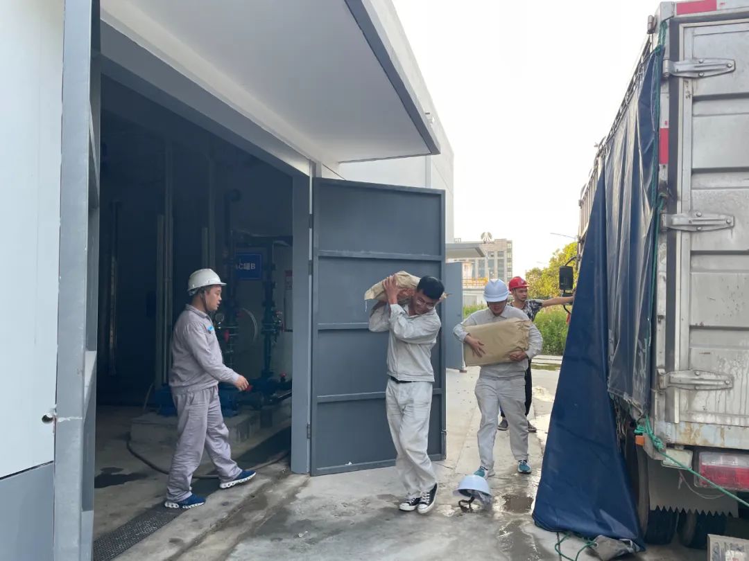 7月 ,天热,人热,运维人员的心也热,5吨的PAM,200袋,让陕化的运维人员忙的不亦乐乎,盼望的药剂终于来了,由于疫情原因,担心药剂不能按时到来的心情得到安慰,烈日挡不住大家的热情,小伙子们热火朝天的搬运着,似乎没有在乎酷暑的折磨,没有什么比保证运维更重要了。
