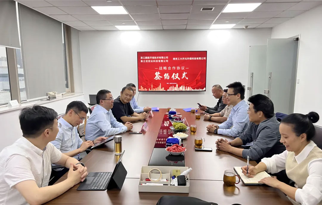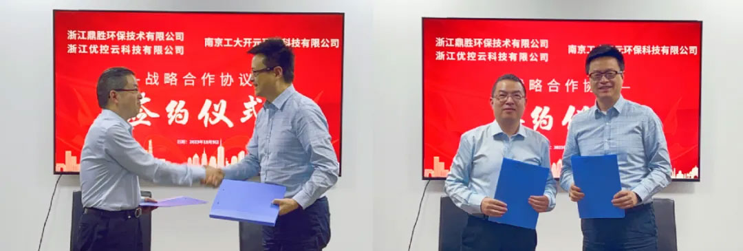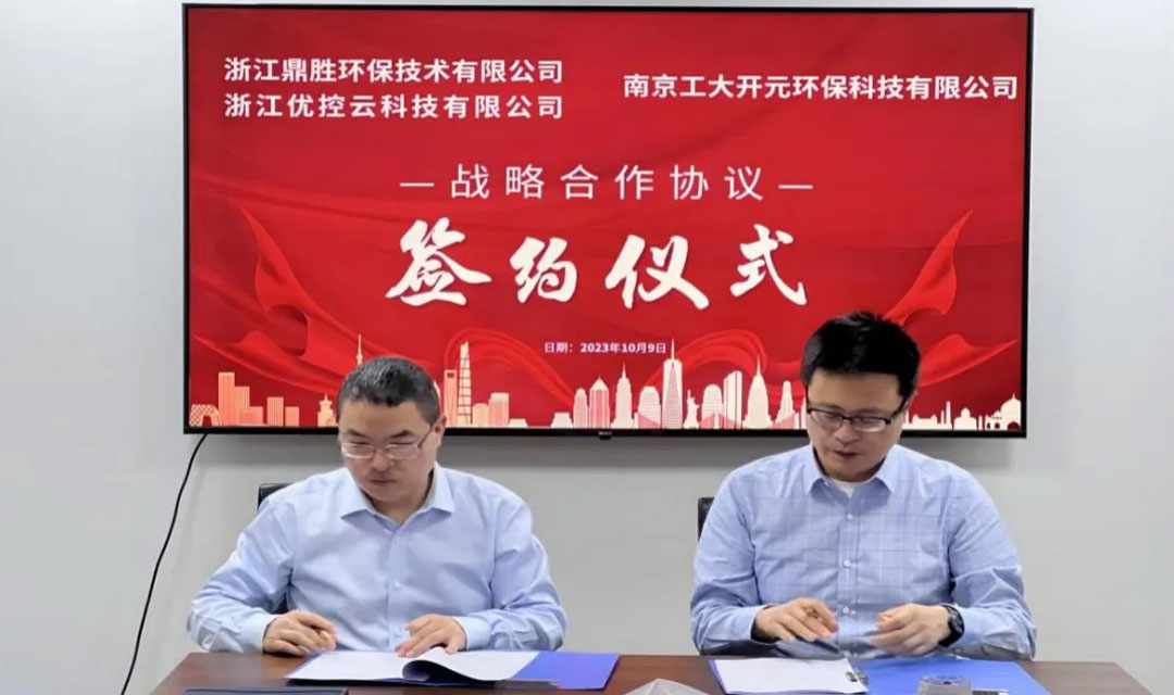 10月9日,南京工大开元环保科技有限公司与浙江鼎胜环保技术有限公司、浙江优控云科技有限公司在杭州举行战略合作协议签约仪式,结成深度战略合作伙伴。