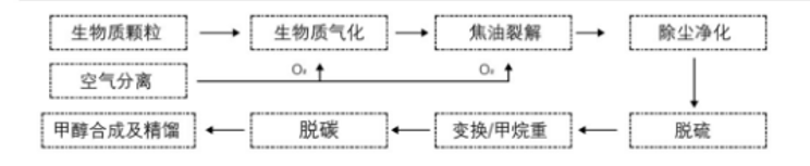 生物气化耦合绿氢绿氧制甲醇