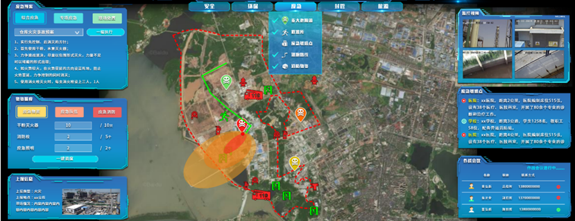 对园区内泄漏、火灾、爆炸、暴雨等紧急事件,以突发事件为驱动,辅助应急指挥人员,为应急防范、救援和保障等工作提供智能化的手段。